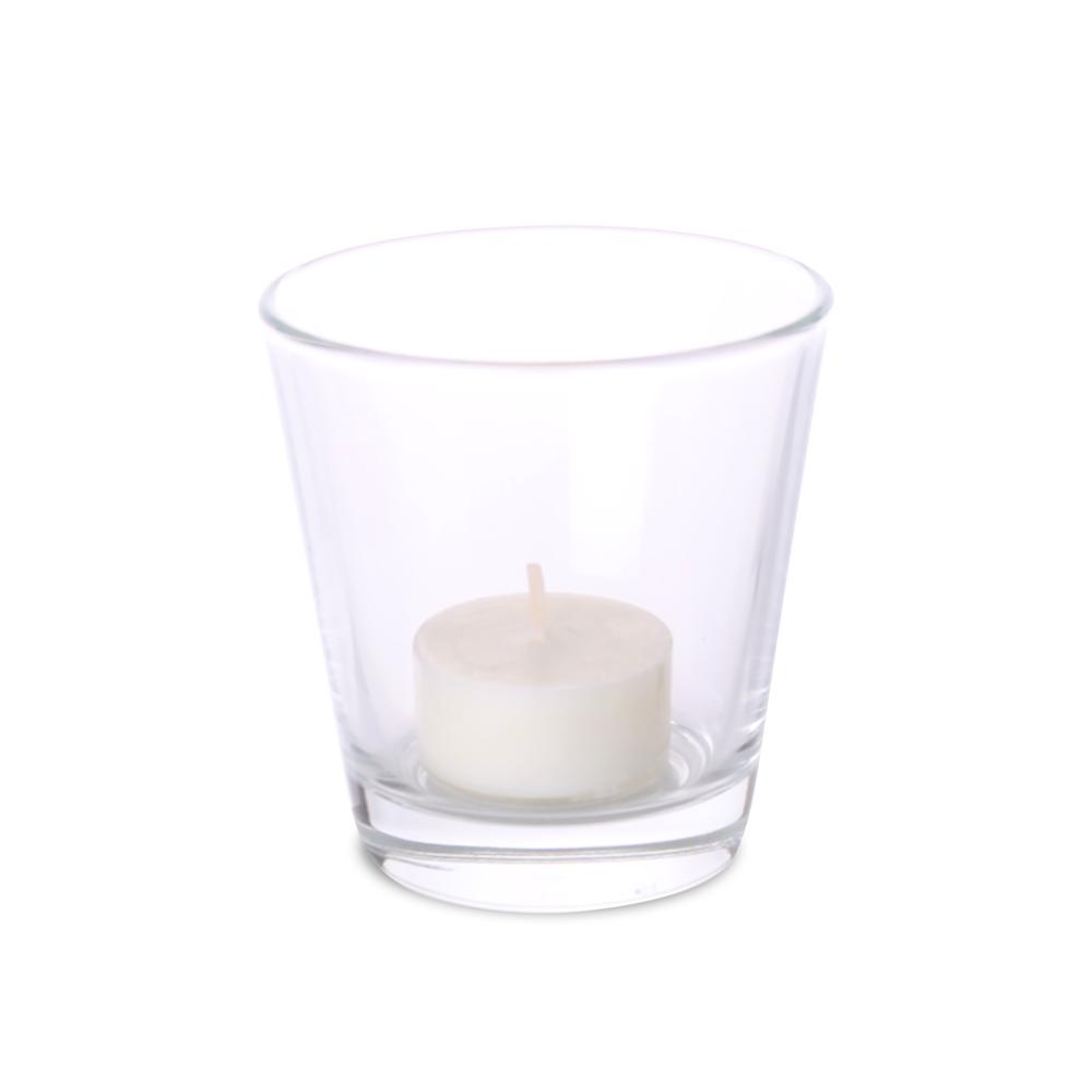Dankzij het ingebouwde theelichtje van sojawas brandt hij natuurlijk, schoon en veilig, zonder schadelijke stoffen. Met een diameter van 81 mm past hij perfect in giveaways of als eyecatcher op tafels.