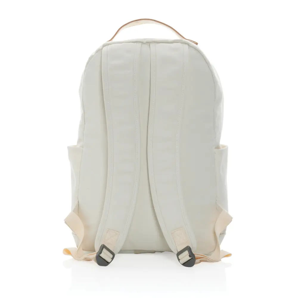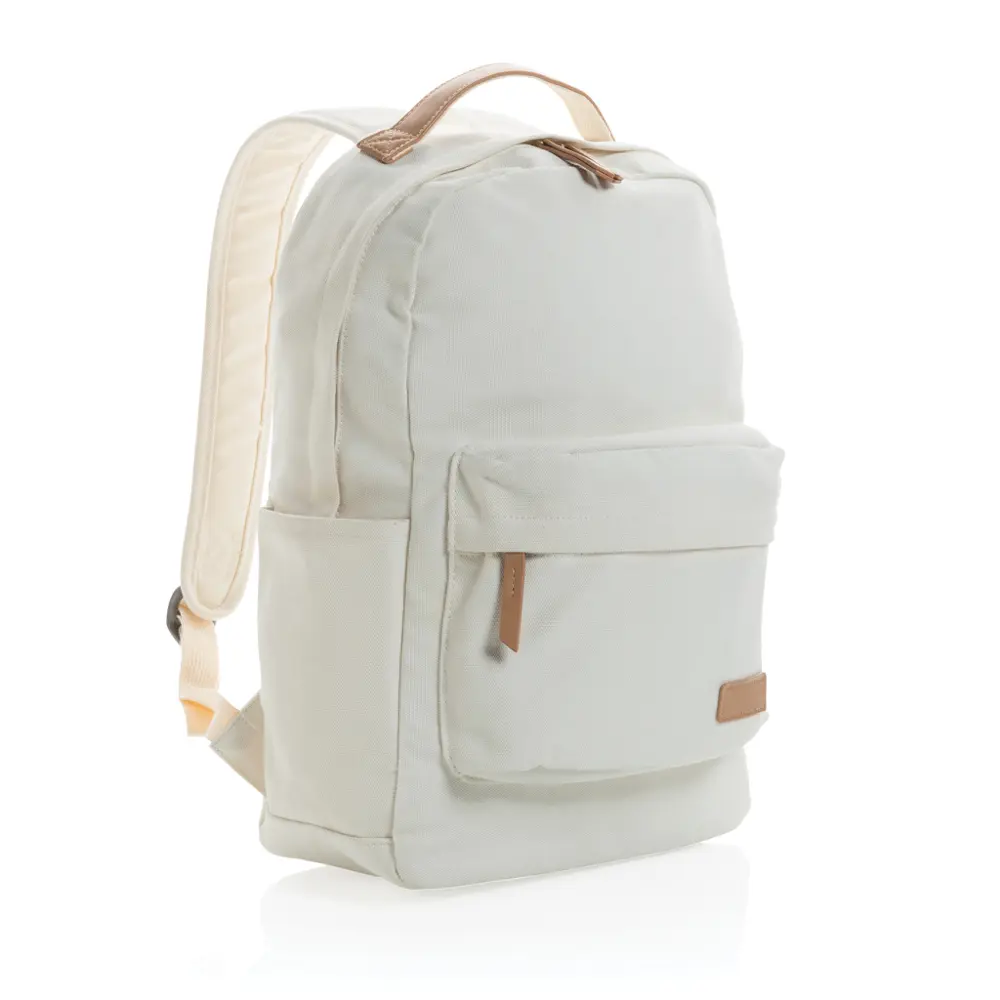 Ontdek onze laptop canvas rugzak van 14 inch, vervaardigd uit gerecycled katoen en polyester voor een duurzame keuze. Deze klassieke rugzak met een inhoud van 16 liter biedt een gewatteerd vak voor uw 14-inch laptop en ruime voor- en achtervakken voor alledaagse essentials. Ideaal als gepersonaliseerd relatiegeschenk met logobedrukking, perfect voor uw marketingcampagnes of events.