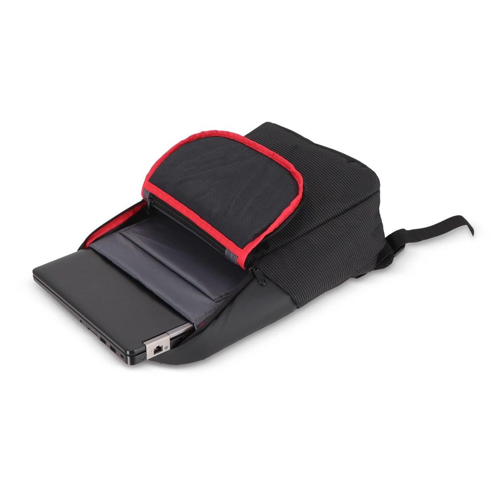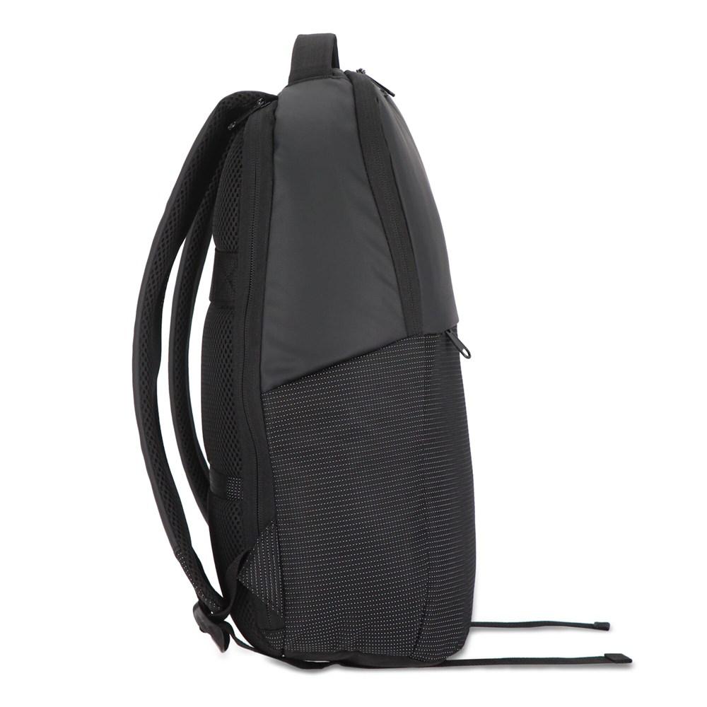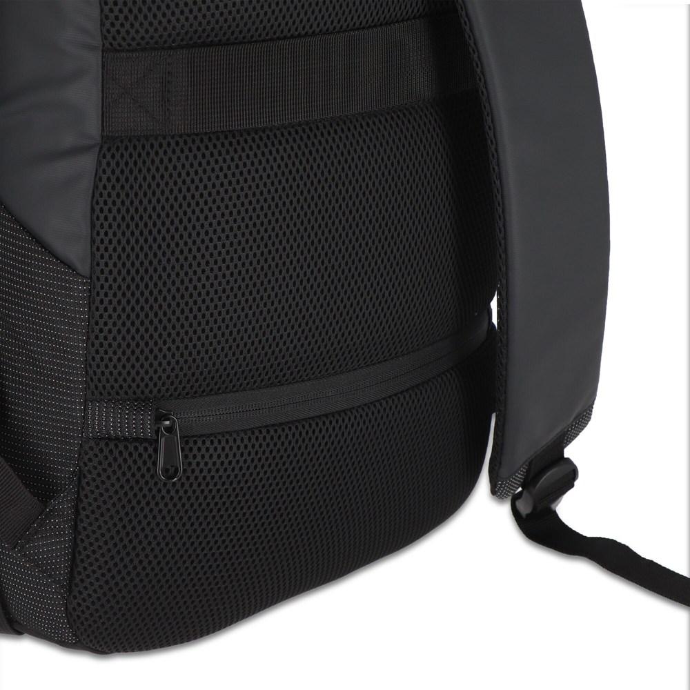 Dubbele toegang tot het laptopvak via de hoofdopening of een discrete achteropening maakt hem superpraktisch. Binnenin vind je een gaasvak, gewatteerd laptopvak en tabletvak, allemaal gevoerd met 210D-stof, zodat je apparatuur veilig blijft.