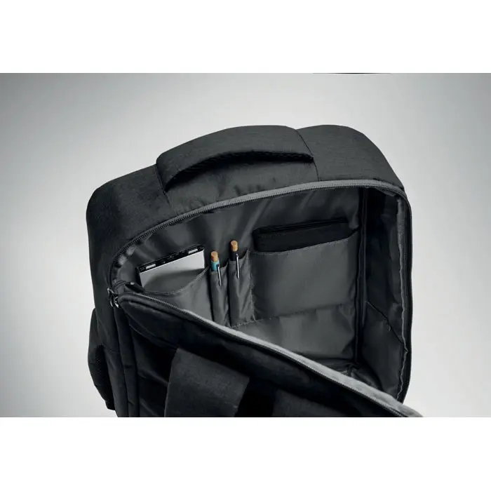 Kies voor deze rugzak als relatiegeschenk en benadruk uw engagement voor duurzaamheid door het gebruik van gerecyclede materialen. Het slanke ontwerp maakt het een stijlvol alternatief voor bulky tassen, ideaal om uit te delen op events of als dank aan uw klanten. Personaliseer met uw logo voor een professionele uitstraling die uw merk versterkt. De ruime opbergmogelijkheden helpen uw ontvangers om georganiseerd te blijven, wat bijdraagt aan een positieve merkassociatie.