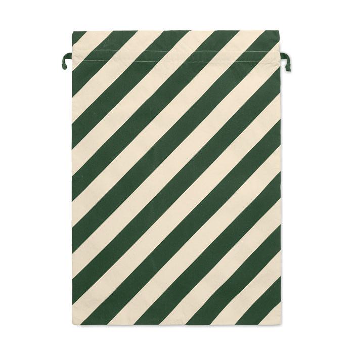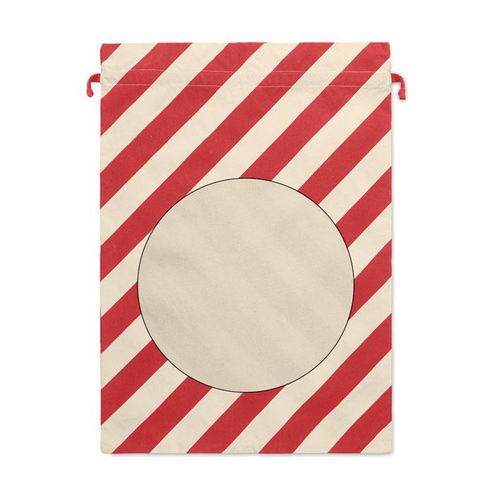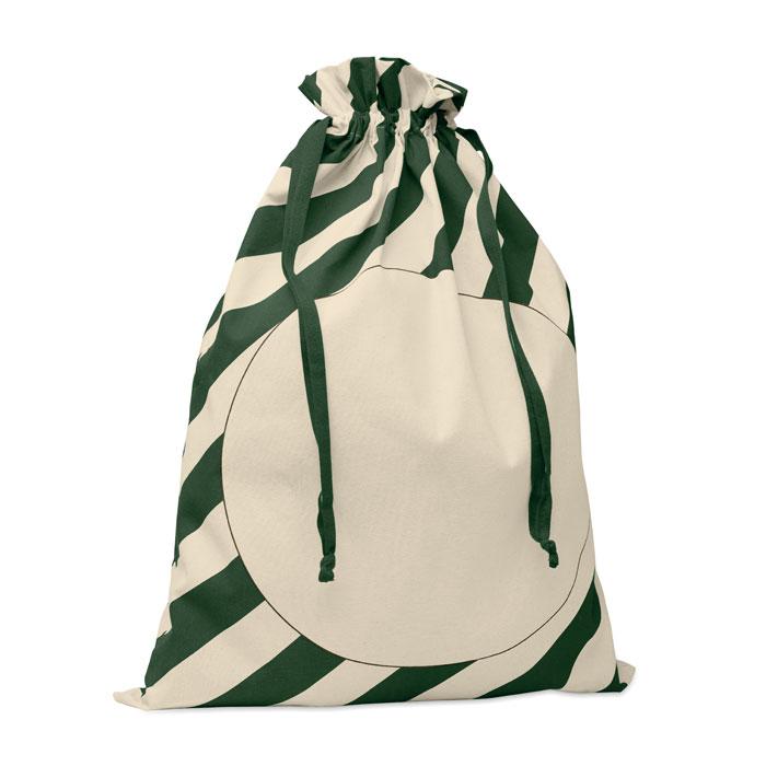 Grote katoenen trekkoordtas met kerstmotief. Afmeting ca. 50x70 cm. 180g/m².