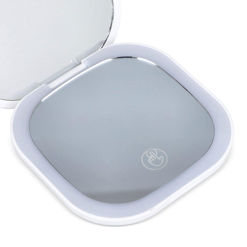 Deze compacte spiegel heeft ingebouwd oplaadbaar LED-licht met touchschakelaar: eenvoudig in- en uitschakelen plus helderheidsaanpassing. Twee zijden bieden 1x en 2x vergroting, ideaal voor precieze make-up of snelle touch-ups onderweg.