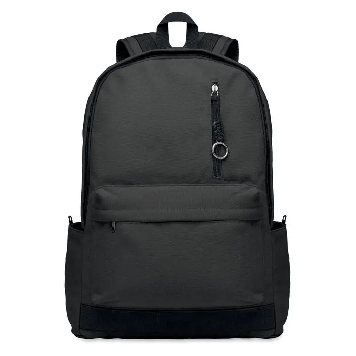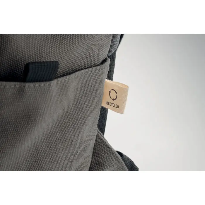 De LEIRUR 15 inch laptop rugzak is vervaardigd uit gerecycled pre-consumer katoen, ideaal voor duurzame bedrijfscommunicatie. Dit robuuste model biedt optimale bescherming voor uw laptop dankzij het gewatteerde binnenvak en de verstevigde bodem. Het grote voorvak met rits en het kleinere voorvak voorzien in praktische opbergruimte, terwijl de twee zijvakken snelle toegang tot accessoires garanderen.