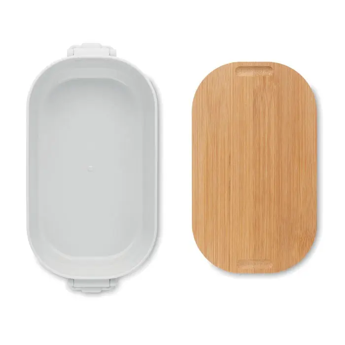 Ontdek onze praktische PP lunchbox met een inhoud van 700 ml, voorzien van een stevige 2-zijdige sluiting en een elegant bamboe deksel. Gemaakt van hoogwaardig polypropyleen (PP) en bio-duurzaam materiaal, is dit product ideaal voor gepersonaliseerde relatiegeschenken met uw logo. U kunt het eenvoudig laten bedrukken om uw merk te promoten bij events of als dank aan uw klanten.