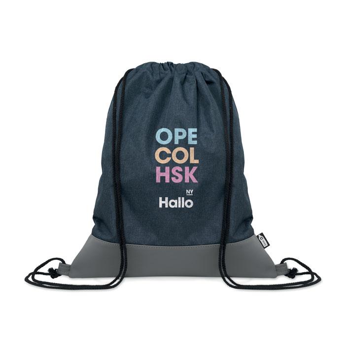 Trekkoord tas in 2-tone 300D RPET polyester met zacht PU-detail en koord van polykatoen.