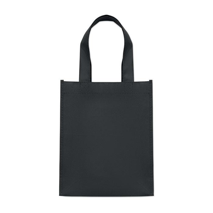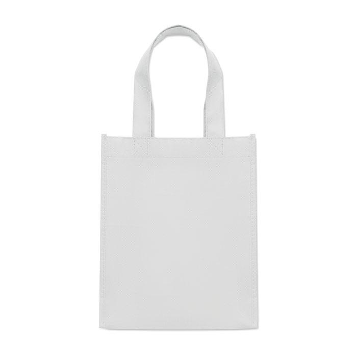 Klein geschenk- of goodiebag van RPET non-woven met korte hengsels en zijvouwen. 80g/m².