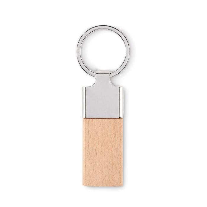 Rechthoekige sleutelhanger van zinklegering met rubberen hout.