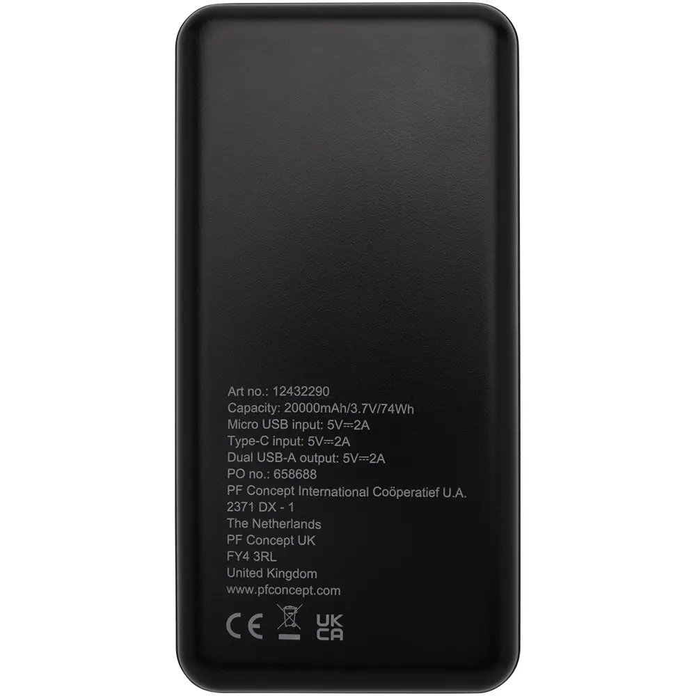 Ontdek onze powerbank gemaakt van gerecycled ABS-kunststof, ideaal voor bedrijven die waarde hechten aan duurzaamheid. Met een krachtige 20.000 mAh lithiumpolymeerbatterij van A-kwaliteit laadt u meerdere apparaten snel op, perfect voor events en relatiegeschenken. De stroomindicatoren tonen het resterende energieniveau, zodat uw klanten altijd voorbereid zijn.