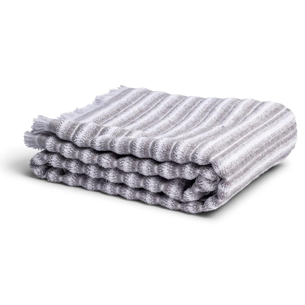 Een mooi dik strandlaken van met gemêleerd motief. In Zweden geïnspireerd door het strand en de zee met kleuren die doen denken aan mosselen, oesters, zand en kwallen.