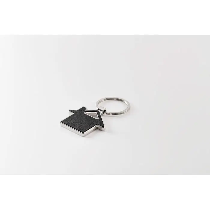 Ontdek onze huisvormige metalen sleutelhanger met inleg van gerecycled PU-leer. Dit duurzame accessoire is ideaal voor uw marketingacties en events. Het combineert stevigheid met een milieuvriendelijk ontwerp, perfect om uw merk te promoten bij uw klanten.