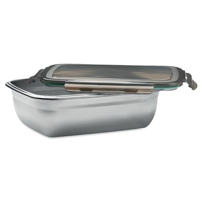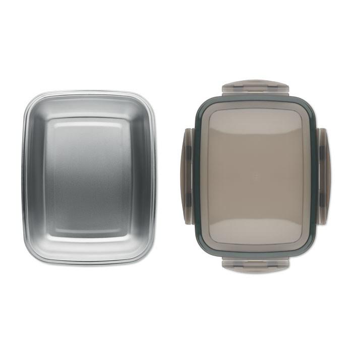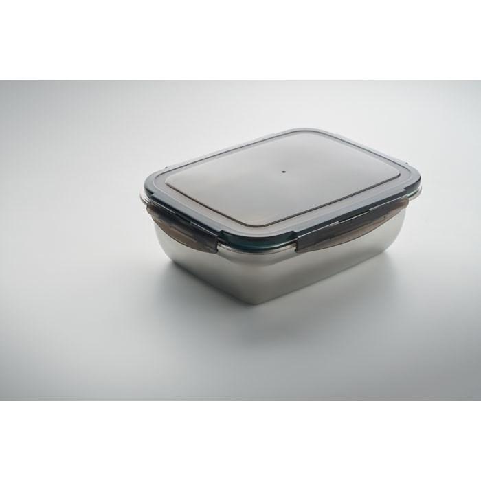 Gerecyclede roestvrijstalen lunchbox met PP deksel en 4 zijdige klemsluiting. Inclusief vakverdeler. Inhoud: 1500ml.