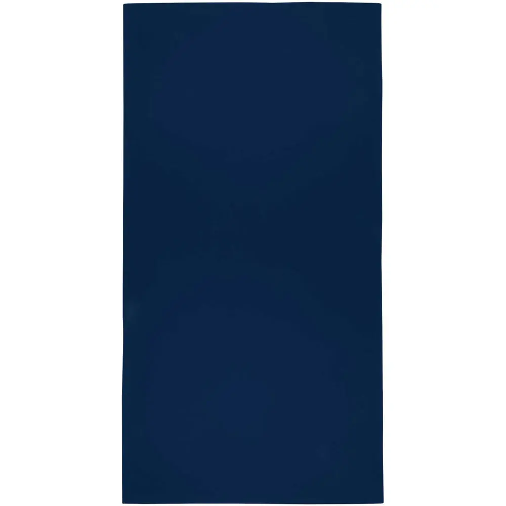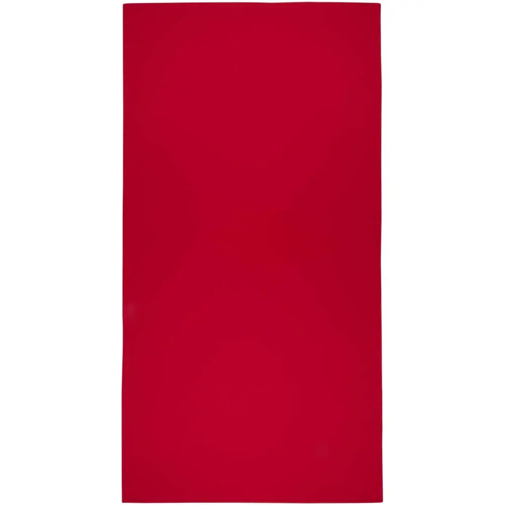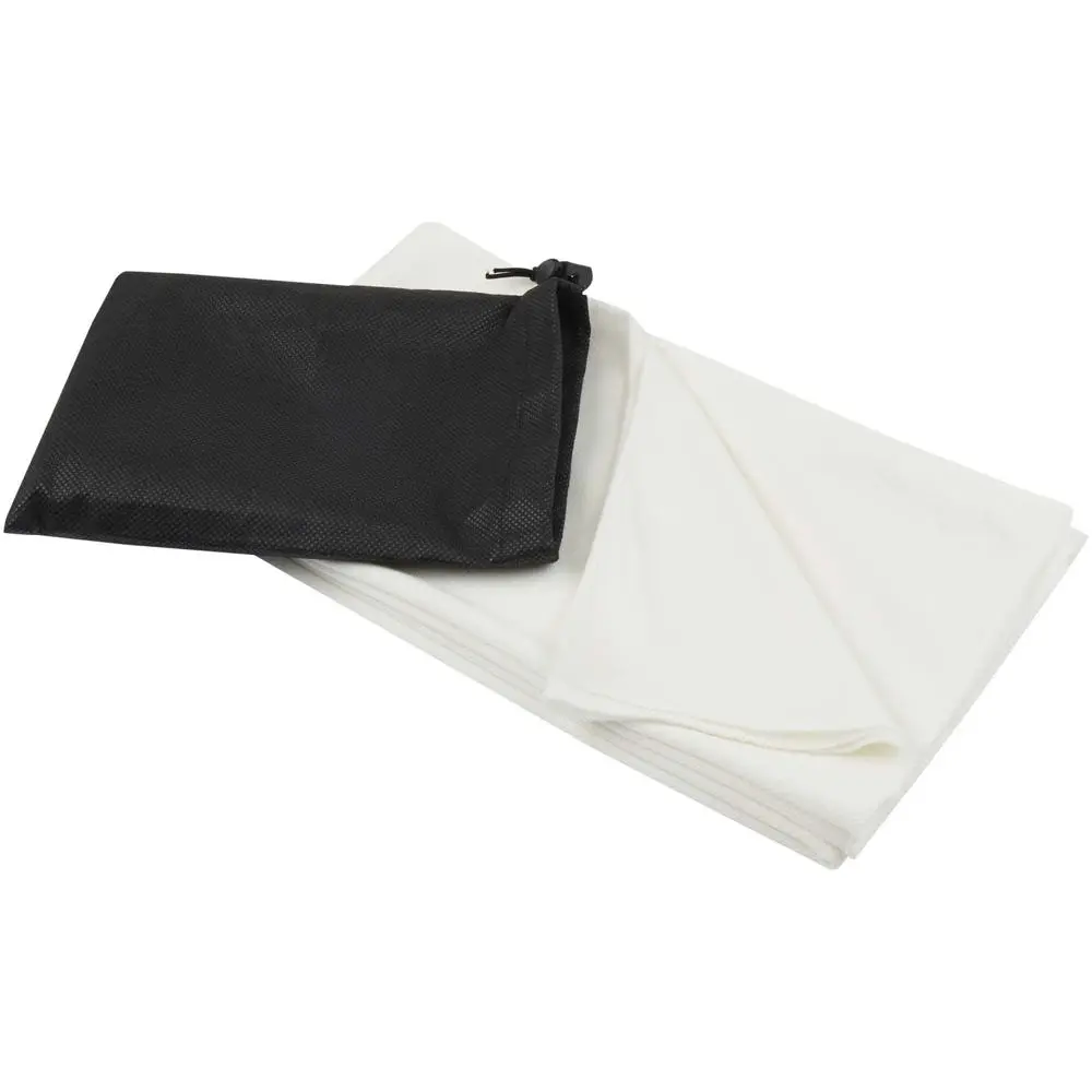 De handdoek meet 70 x 140 cm, wat een ruime afmeting biedt voor effectief gebruik. Gemaakt van gebreid gerecycled polyester, combineert het kwaliteit met een laag gewicht voor optimale draagbaarheid. De verpakking in een individueel gift pouch maakt bulkbestellingen eenvoudig te beheren, zodat u efficiënt kunt uitdelen tijdens uw events.