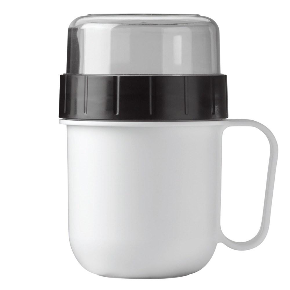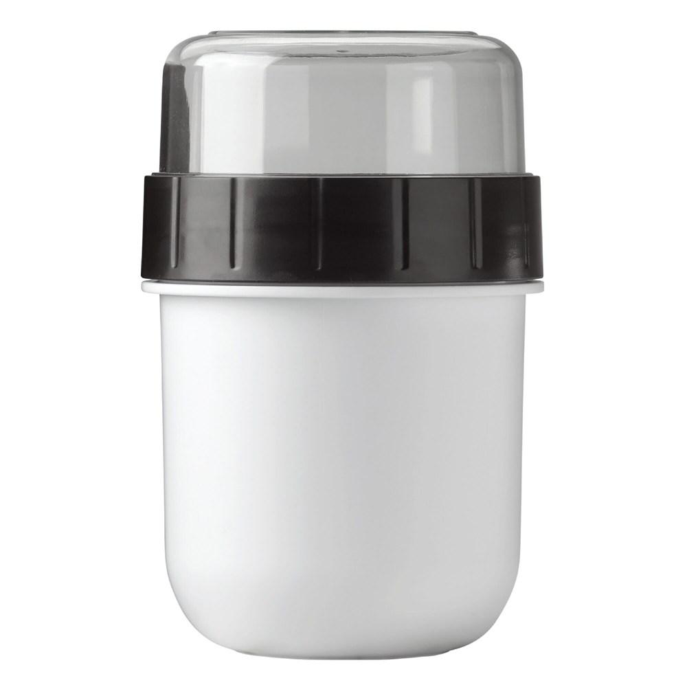 Ontdek deze praktische lunchbeker to-go met twee slimme compartimenten: de grote voor je yoghurt of soep (520 ml) en het kleine voor muesli, fruit of croutons (230 ml). Alles blijft vers en knapperig gescheiden, ideaal voor onderweg.