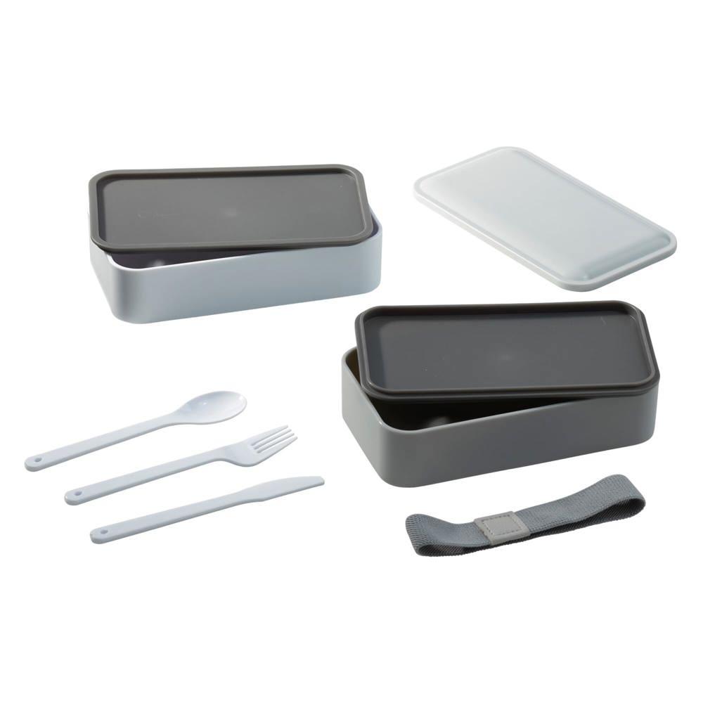 Ontdek de Lunchbox Bento met bestek 1250ml, geïnspireerd op het eeuwenoude Japanse bento-concept met twee praktische compartimenten. Je houdt je lunch netjes gescheiden en vers, ideaal voor onderweg of op kantoor.