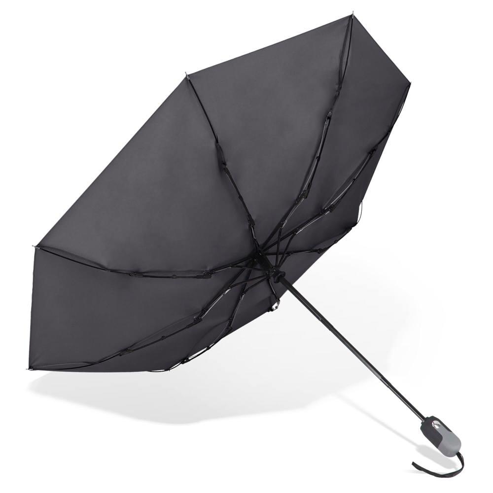 Luxe opvouwbare paraplu van Pongee polyester met een zakelijke uitstraling. Het ergonomisch gevormde handvat bevat een mechanisme om de paraplu automatisch te openen en weer ter sluiten. Het frame is deels van glasvezel dat de paraplu extra sterk maakt. Wordt in een hoesje geleverd.