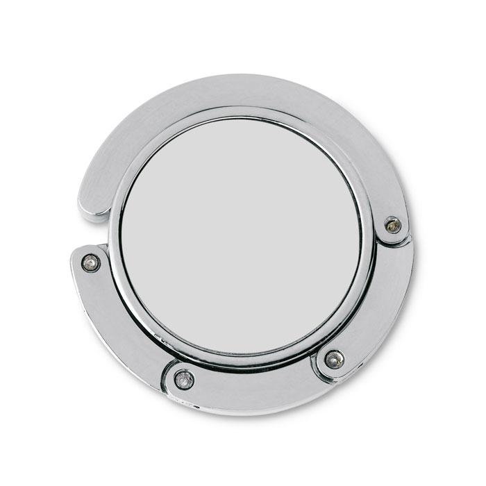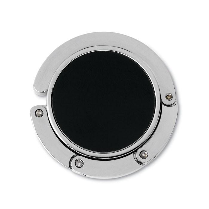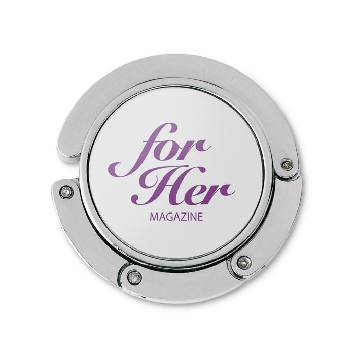 Praktische metalen handtashouder met inklapbare haak die je eenvoudig aan een tafelrand hangt. Zo blijft de tas van je gasten proper en veilig uit de weg tijdens events of meetings. Ideaal als gepersonaliseerd relatiegeschenk met jouw logo bedrukt – perfect om je merk te promoten bij klanten.