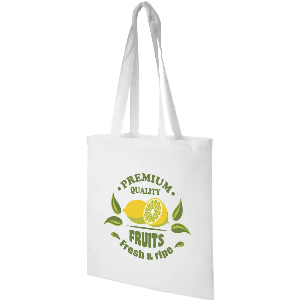 Deze draagtas biedt talrijke voordelen die aansluiten bij uw behoeften als marketingprofessional of eventorganisator. De tas is robuust en herbruikbaar, ideaal voor het dragen van kleine boodschappen of giveaways. Dankzij de eco-vriendelijke eigenschappen draagt u bij aan een duurzamere bedrijfsimago. De lange hengsels maken het dragen comfortabel, terwijl de ruime inhoud uw spullen veilig vervoert. Kies voor deze tas om uw merk op een praktische en professionele manier te promoten, met een focus op kwaliteit en milieubewustzijn.
