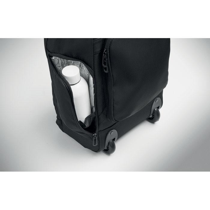 MAGNATE - 290T RPET rugzak trolley: de ideale gepersonaliseerde rugzak trolley voor jouw events en promoties. Gemaakt van duurzaam 290T RPET-polyester, met drie ritsvakken vooraan, een gewatteerd vak voor je 15'' laptop en een handig koelvak. Afmetingen 41×28×20 cm zorgen voor optimale opbergruimte.