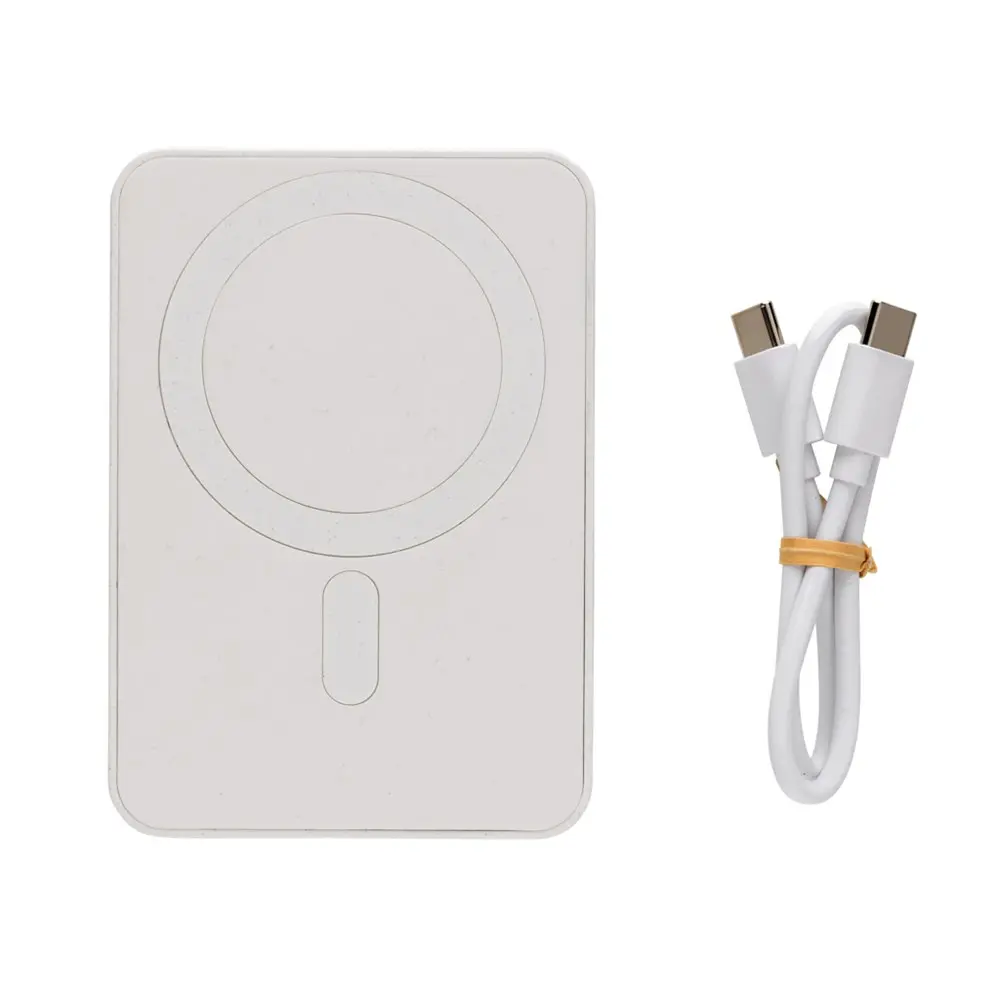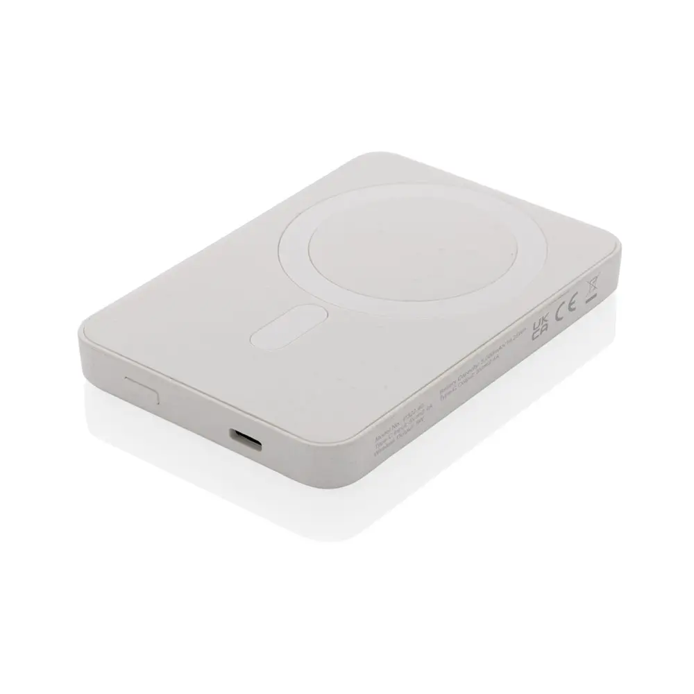 Ontdek deze compacte powerbank met een capaciteit van 5.000 mAh, ideaal als gepersonaliseerd relatiegeschenk voor uw bedrijf. Met de ingebouwde 5W magnetische draadloze oplader laadt u smartphones moeiteloos op, zonder gedoe met kabels. De behuizing bestaat uit RCS-gecertificeerd gerecycled ABS-plastic, wat 20% gerecyclede inhoud garandeert op basis van het totale gewicht. Dit maakt het product een sterk statement voor duurzaam ondernemen, perfect voor marketingteams en eventorganisatoren die hun merk willen associëren met milieubewustzijn.