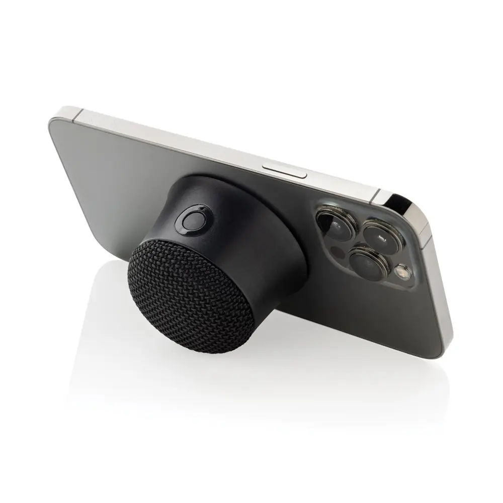 Ontdek deze innovatieve magnetische draadloze luidspreker van 5 W, perfect voor uw marketing- en eventactiviteiten. Bevestig hem eenvoudig aan de achterkant van een mobiel apparaat met magnetische montage, en transformeer hem in een handige mobiele standaard terwijl u muziek streamt. De speaker hecht zich ook moeiteloos aan andere magnetische oppervlakken, zoals koelkasten, voor veelzijdig gebruik.