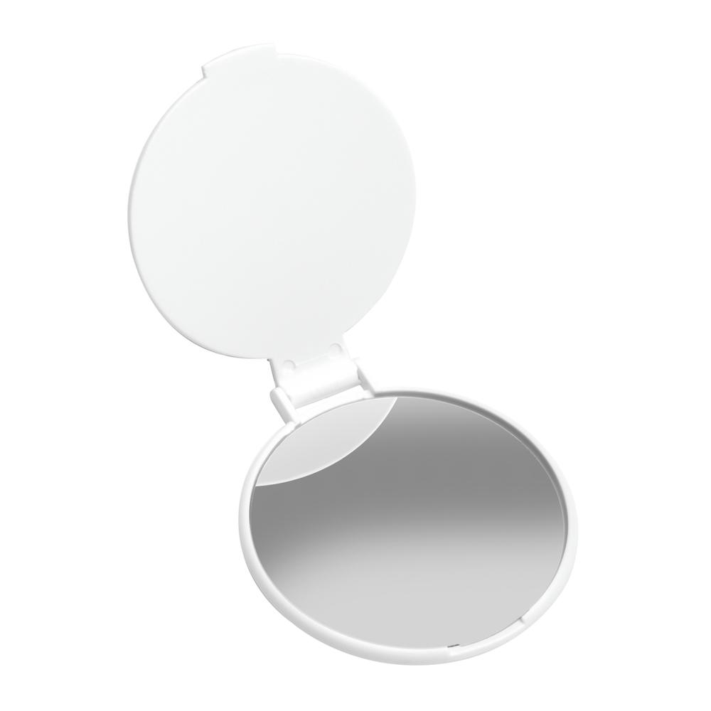 De witte, handige make-up spiegel past in elke toilet- en handtas en trekt de aandacht. Het eenzijdige spiegelglas wordt beschermd tegen krassen en stoten door de inklapbare bovenkant. Hierop is ook plaats voor een opvallende bewerking. Kies voor een prominente UV-druk over het hele oppervlak, doming of een één- tot vierkleurige tampondruk.