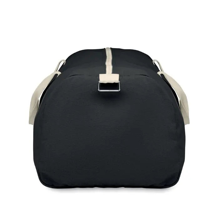 Deze reistas bestaat uit 60% gerecycled katoen en 40% gerecycled polyester met een stevigheid van 320 gr/m². De hengsels zijn vervaardigd uit natuurlijk katoen, terwijl een verstelbare en afneembare schouderriem extra comfort biedt. Het gebruik van RPET en gerecycled katoen minimaliseert de milieu-impact, wat uw bedrijf positioneert als een verantwoorde keuze.