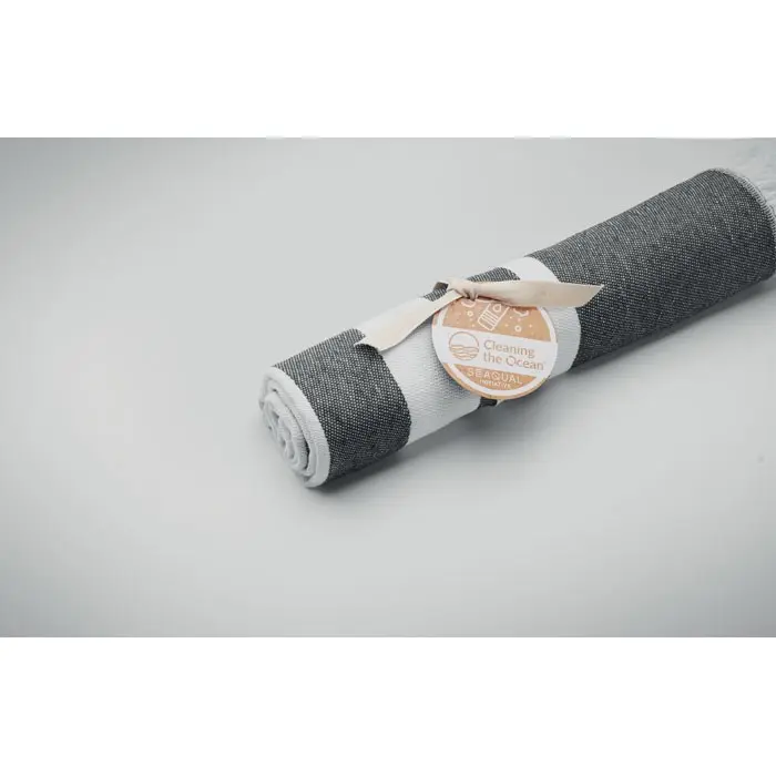Ontdek onze SEAQUAL® hamamdoek van 70x140 cm, ideaal als gepersonaliseerd relatiegeschenk voor uw marketingacties of events. Gemaakt van 70% gerecycled katoen en 30% gerecycled polyester SEAQUAL® YARN, met een gewicht van 300 gr/m², biedt deze doek een zachte, absorberende textuur voor optimaal comfort op het strand, in de hamam of tijdens ontspanningsmomenten.