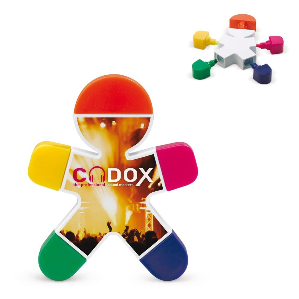Toppoint design markeerstift in de vorm van een poppetje. De benen, handen en het hoofdje zijn markeerstiften die uit het poppetje kunnen worden gehaald.