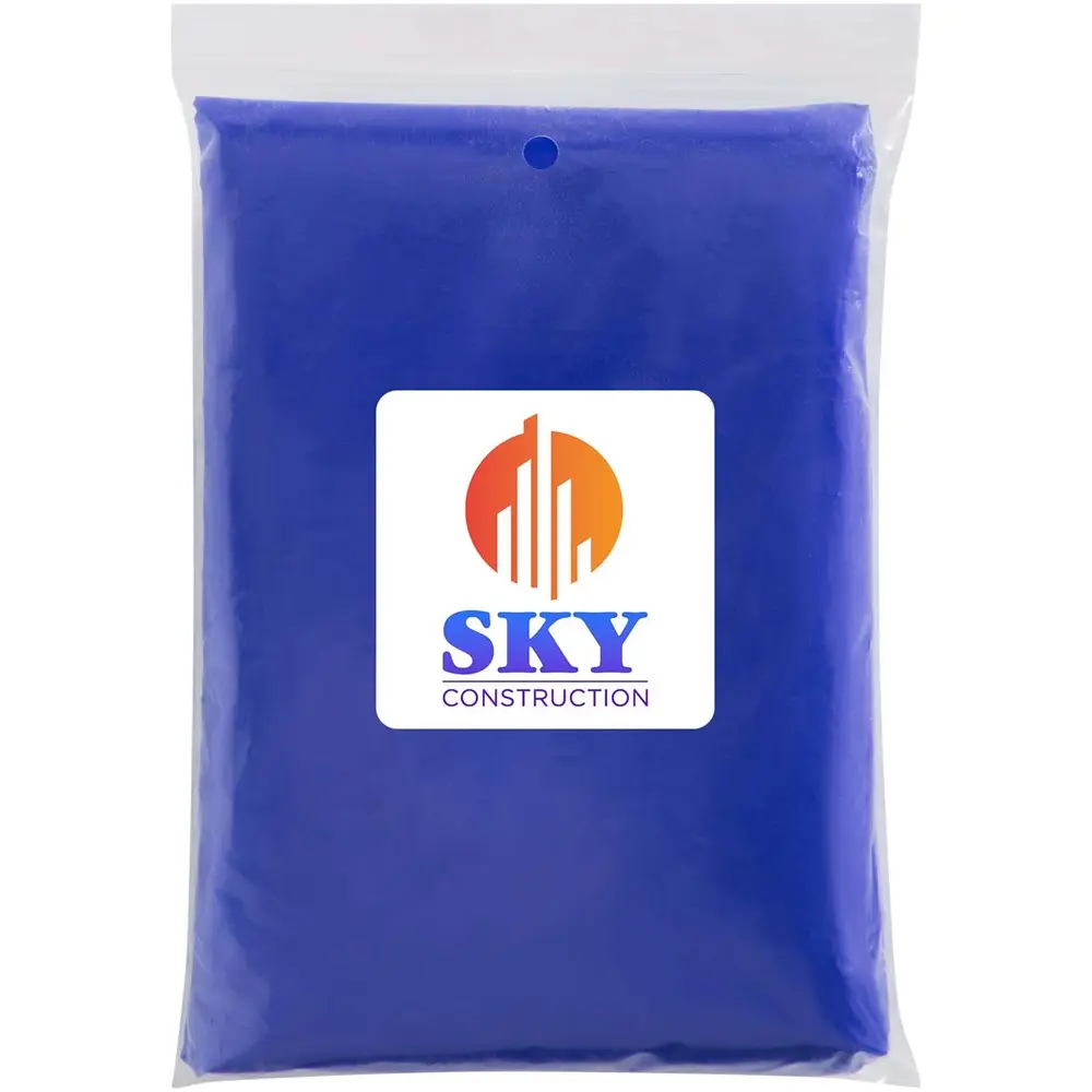 De poncho heeft een one-size-fits-all ontwerp met afmetingen van 90 x 120 cm, geschikt voor de meeste volwassenen. Verpakt in een individuele polybag van 10 x 0,5 x 15 cm, is het gemakkelijk op te bergen en uit te delen tijdens events. De opbergtas biedt ruimte voor personalisatie, zodat u uw branding naadloos integreert.