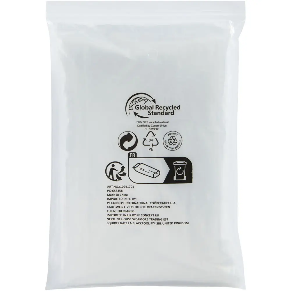 Met deze gepersonaliseerde regenponcho investeert u in effectieve branding voor events en promoties, en ondersteunt u tegelijkertijd milieubewuste keuzes door het gebruik van gerecycled materiaal.