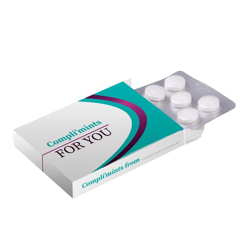 Dit medicijndoosje combineert functionaliteit met promotie. De Compli'mints verlichten snel momenten van vermoeidheid, wat zorgt voor een positieve associatie met uw merk. Het is ideaal om uit te delen tijdens events of als bedankje aan klanten, waardoor uw zichtbaarheid vergroot. Ook verkrijgbaar met druivensuikertabletten voor variatie in uw campagne. Een bijsluiter is op aanvraag beschikbaar om uw distributie professioneel te ondersteunen.