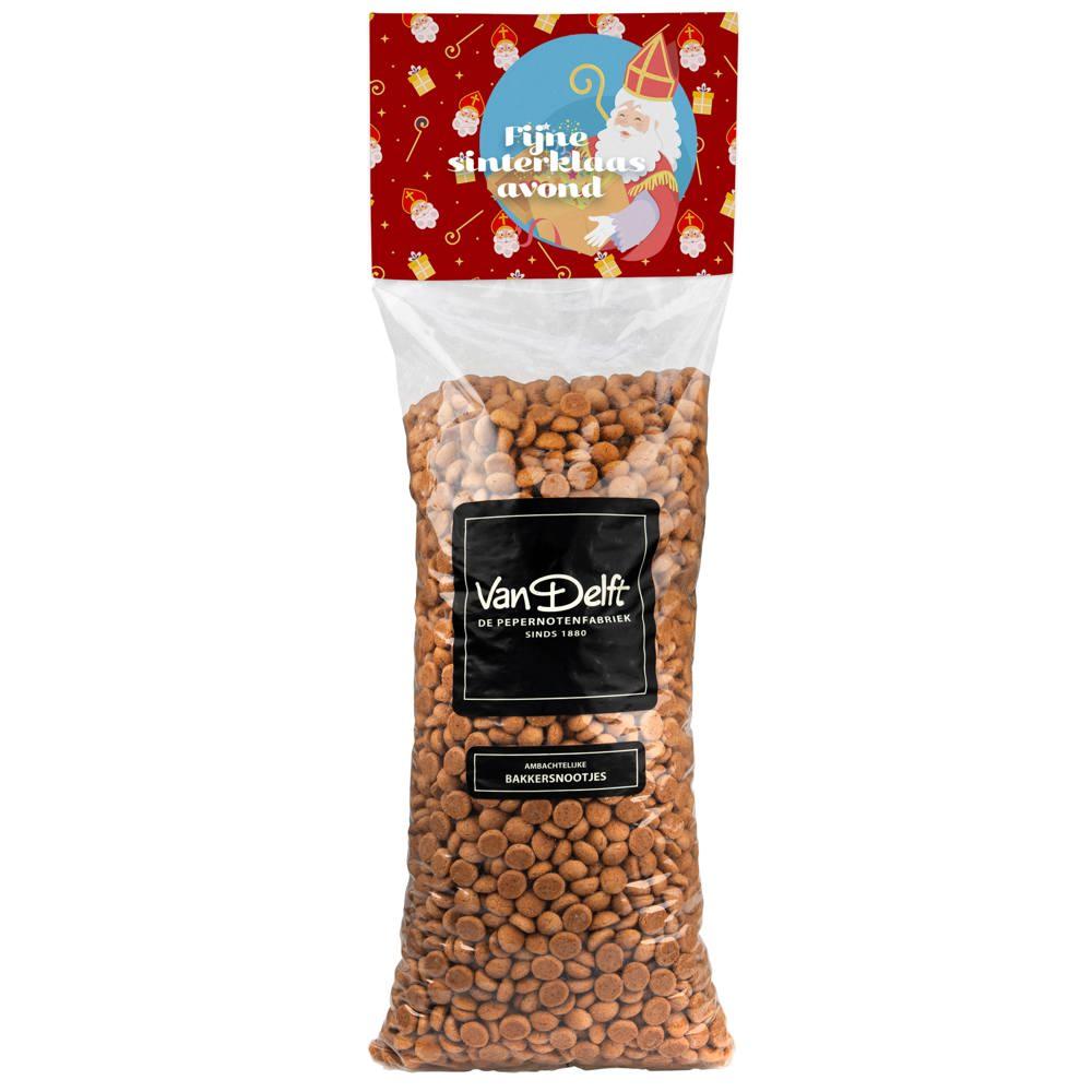Mega zak van 3 kilo Kruidnoten met een full colour bedrukte kopkaart