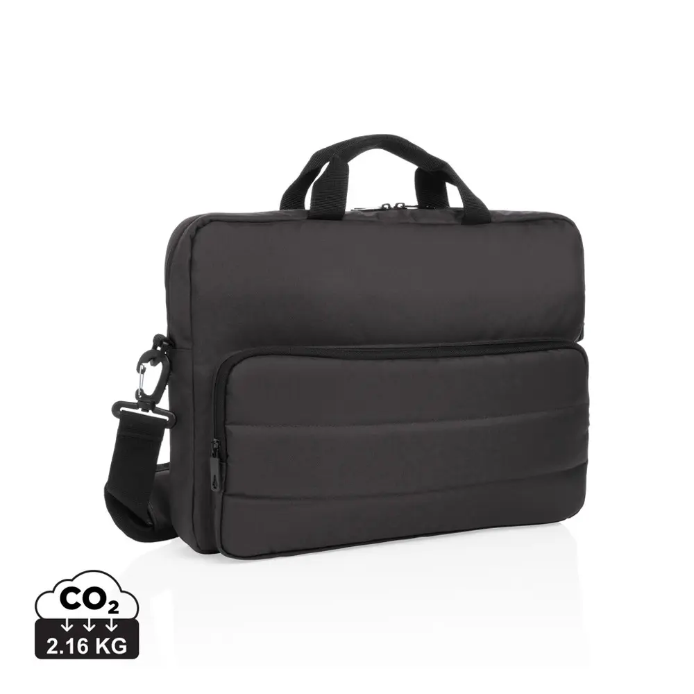 Ontdek de ideale oplossing voor uw marketing- en eventstrategieën met deze milieuvriendelijke laptoptas. Gemaakt van 100% gerecycled polyester uit PET-flessen, combineert ze kwaliteit en verantwoordelijkheid. Perfect voor personalisatie met uw logo, zodat u uw merk op een duurzame manier promoot bij klanten en relaties.