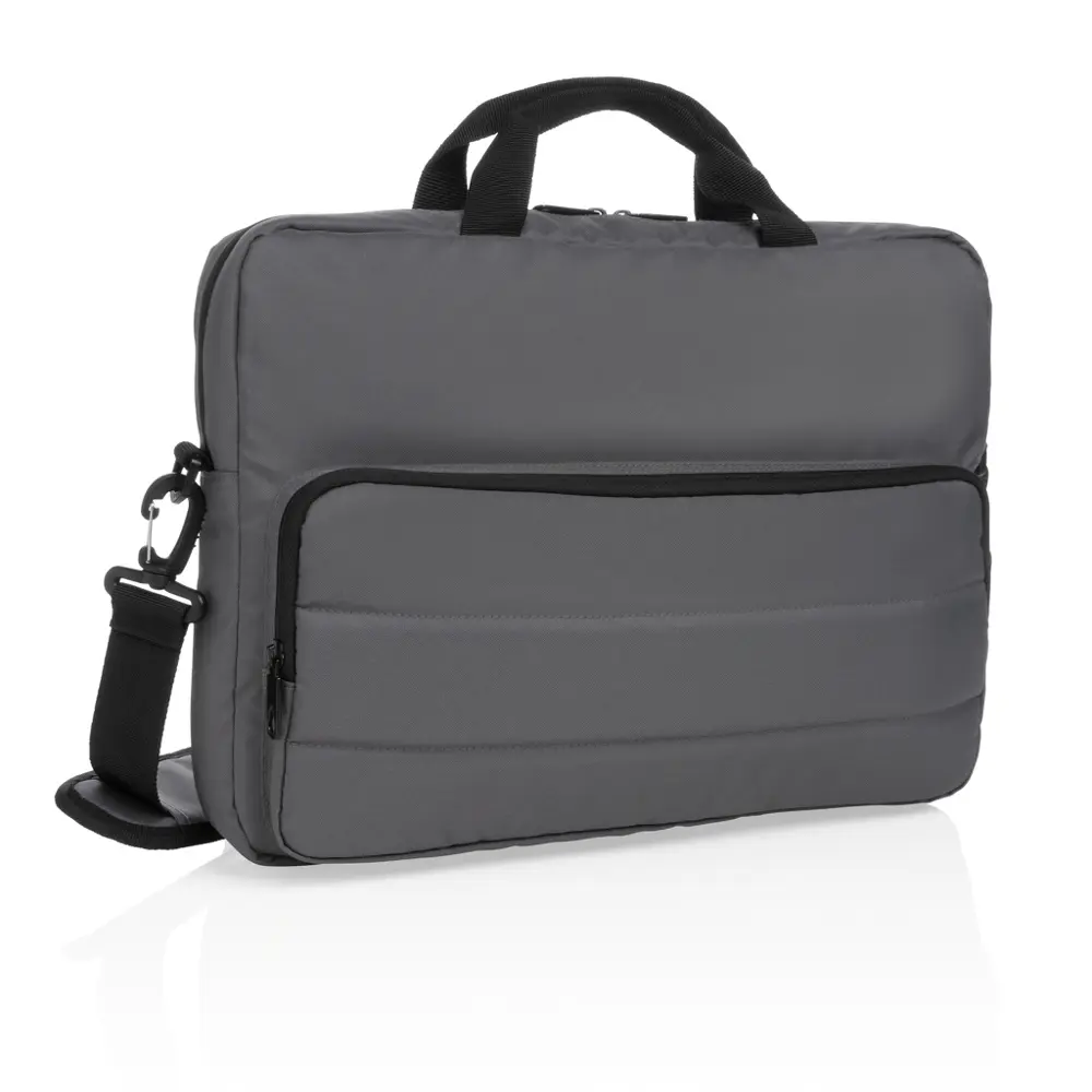 Deze 15,6 inch laptoptas past perfect bij de moderne professional. Het tijdloze design met accentstiksels aan de voorkant zorgt voor een professionele uitstraling. Met een inhoud van 6,5 liter, meerdere opbergvakken, twee stevige handgrepen bovenaan en een verstelbare, afneembare schouderriem, is ze ideaal voor dagelijks gebruik. De buitenstof en binnenvoering van rPET en PU garanderen duurzaamheid en comfort.