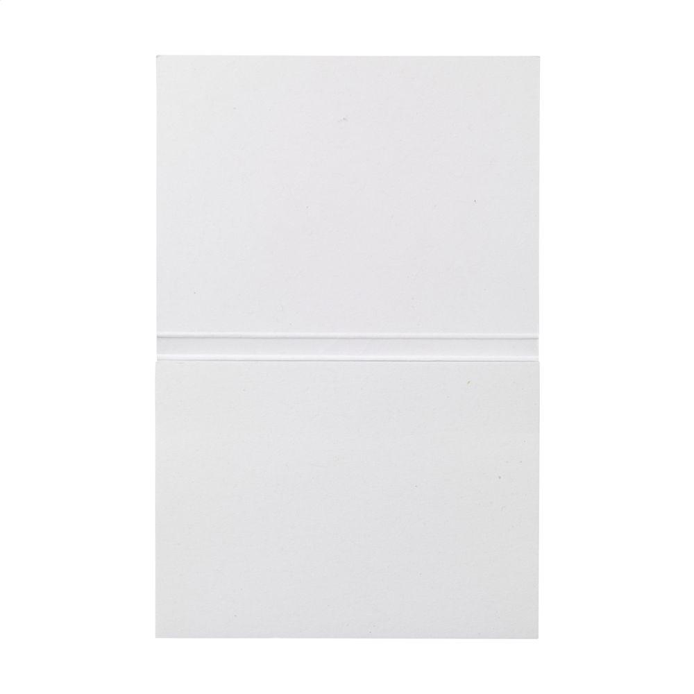 Ontdek dit duurzame memoblokje met softcover van gerecycled offsetpapier (300 g/m²) en 50 zelfklevende memovelletjes van wit gerecycled papier (80 g/m²). Gemaakt in Europa voor topkwaliteit.