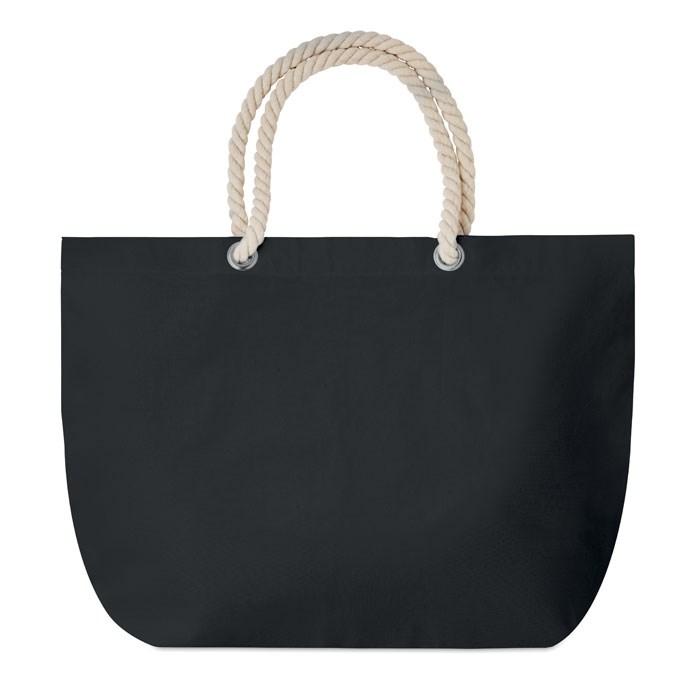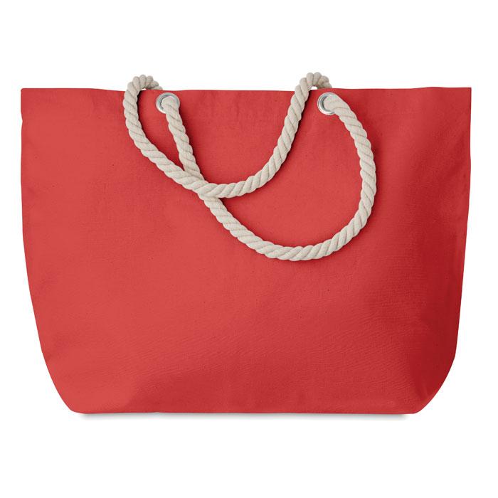 Strand-/ boodschappentas van katoen met touw hengsels. Gewicht: 220 g/m².