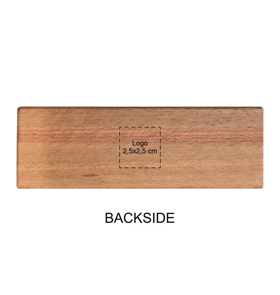Wij specialiseren ons in logobedrukking op beukenhout, zodat u uw eigen touch toevoegt. Deze aanpassing maakt de menukaarthouder tot een uniek promotie-item voor marketingcampagnes of events. Het natuurlijke materiaal benadrukt kwaliteit en authenticiteit, wat uw boodschap versterkt en bijdraagt aan langdurige klantbinding in de horeca-sector.