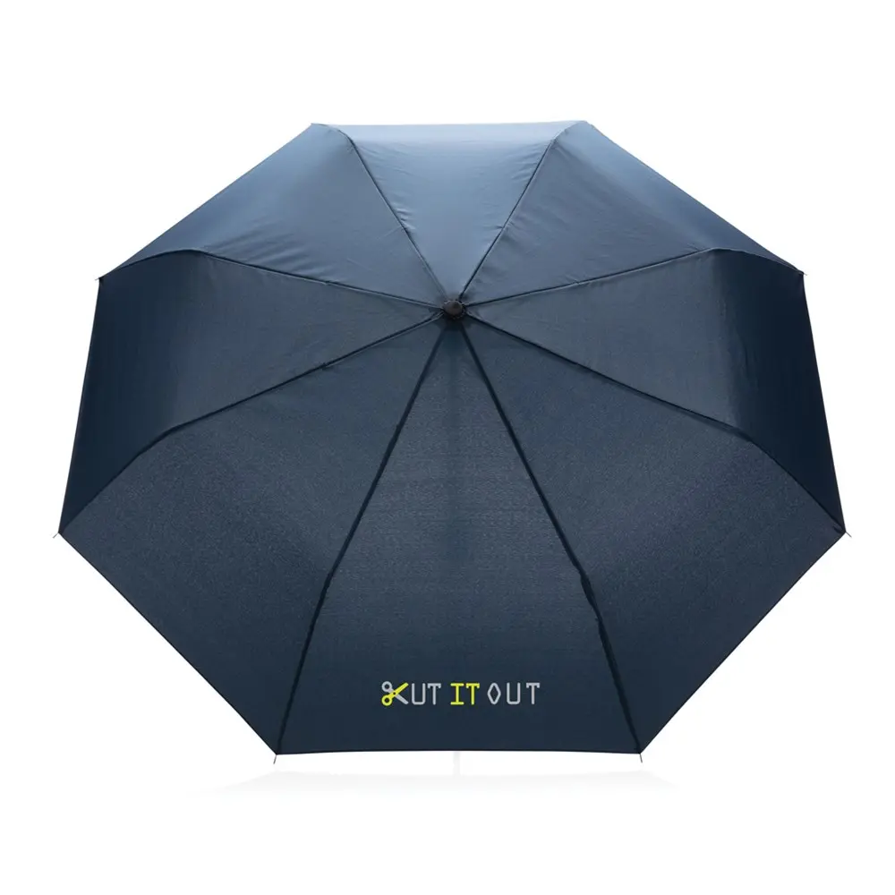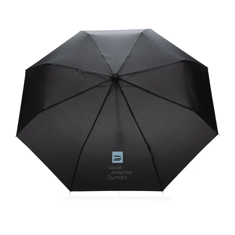 Ontdek de Mima manuele plooiparaplu, een duurzame keuze voor uw promotiegeschenken. Gemaakt van 190T RPET-pongee met AWARE™-tracer, garandeert deze paraplu echte gerecyclede materialen en waterbesparende productie, gebaseerd op betrouwbare LCA-gegevens. Voor het doek zijn 7,1 PET-flessen hergebruikt, terwijl 2% van de opbrengst naar Water.org gaat voor schoon water wereldwijd.