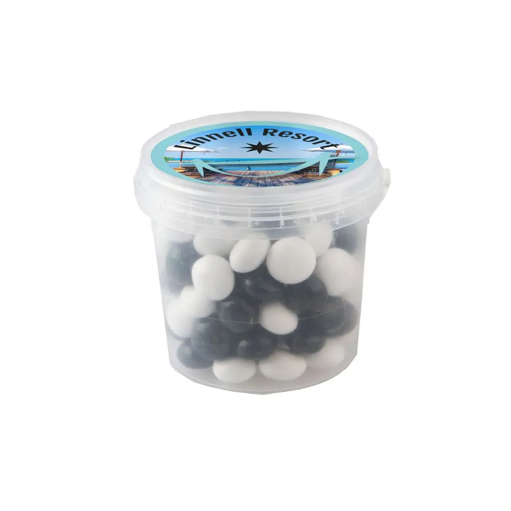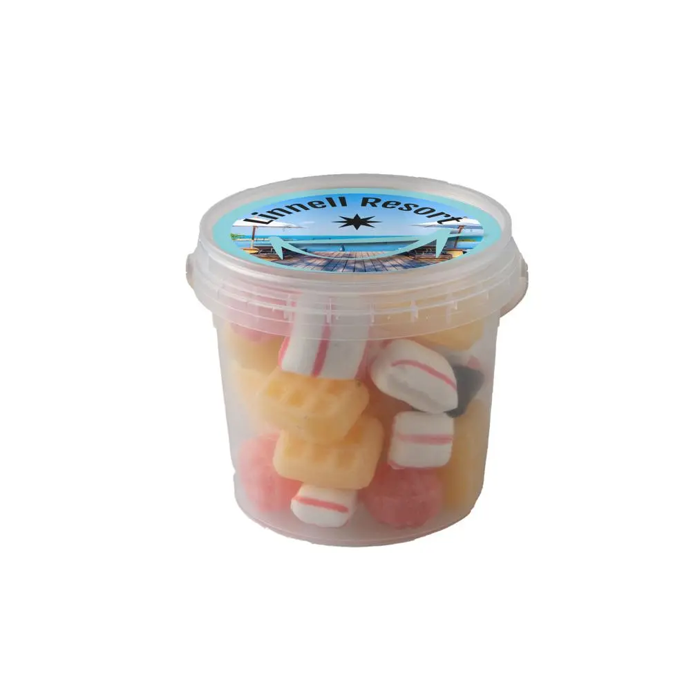 Dit handige formaat past moeiteloos in give-away pakketten en trekt direct aandacht tijdens beurzen of promoties. De transparante uitvoering toont de inhoud aantrekkelijk, terwijl de personalisatie zorgt voor een professionele uitstraling. Kies dit mini emmertje om uw bedrijf op een smakelijke manier te promoten en relaties te versterken – een bewezen manier om uw naamsbekendheid te vergroten.