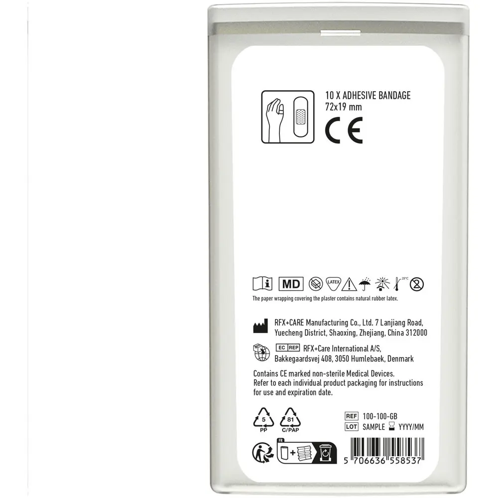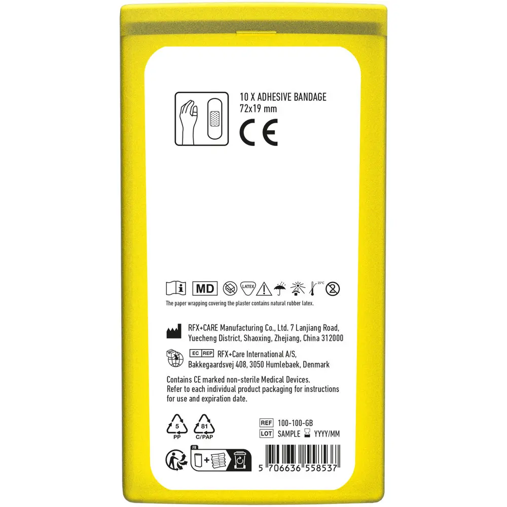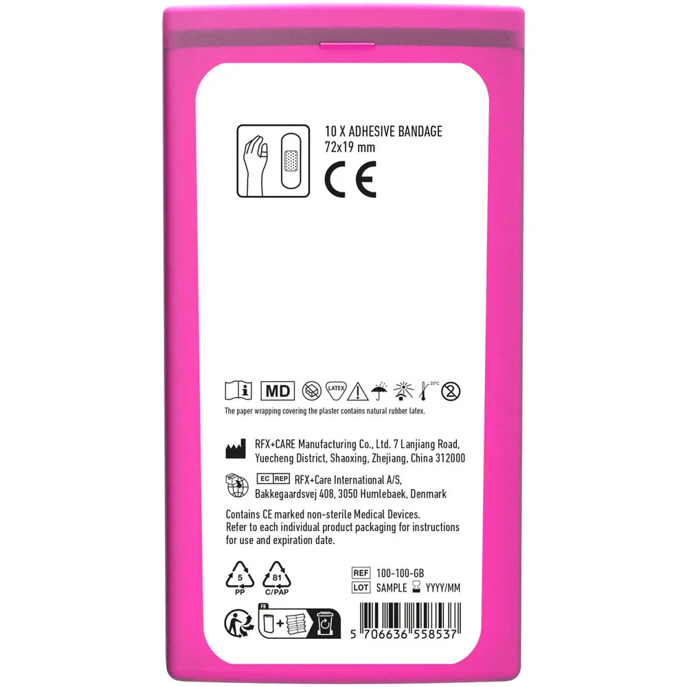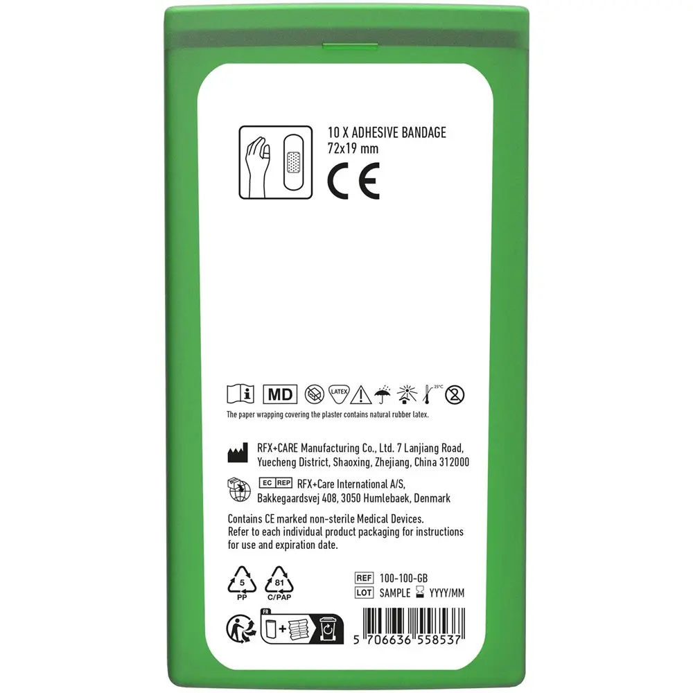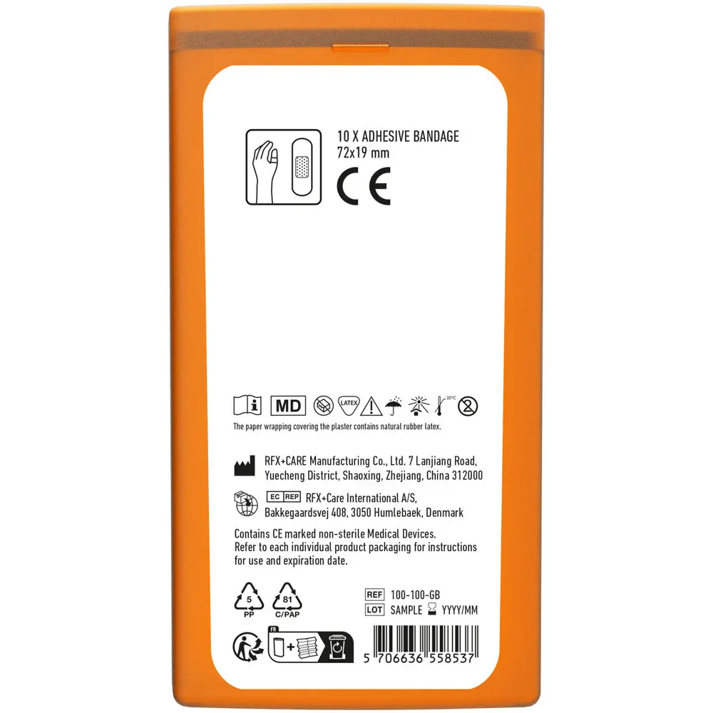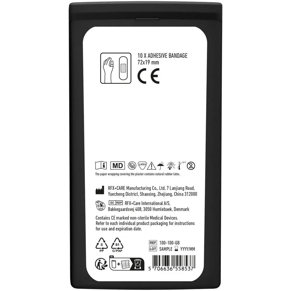 De kit bevat 10 waterbestendige pleisters in een stevig kunststof doosje, volledig bedrukt in full colour op alle zijden met uw logo. Dit zorgt voor langdurige zichtbaarheid van uw merk, ideaal als give-away die 'blijft plakken' bij uw doelgroep.