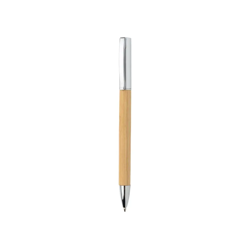 Ontdek hoe deze bamboe pen moderne elegantie combineert met betrouwbaar schrijfcomfort. De twist-action mechanisme zorgt voor een soepele bediening, ideaal voor dagelijks gebruik. Gemaakt van bamboe en ABS met een matte metalen afwerking op de dop, biedt deze pen een premium uitstraling die uw merk versterkt.