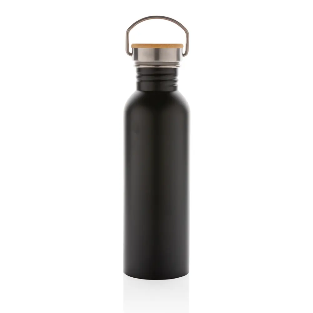 Ontdek deze moderne roestvrijstalen drinkfles met bamboe deksel, ideaal als gepersonaliseerd relatiegeschenk voor uw bedrijf. De enkelwandige constructie uit hoogwaardig RVS en bamboe zorgt voor een minimalistisch, elegant design dat perfect past bij uw merkidentiteit. Met een capaciteit van 710 ml biedt deze fles voldoende volume voor dagelijks gebruik, terwijl de geïntegreerde RVS handgreep het dragen vereenvoudigt.