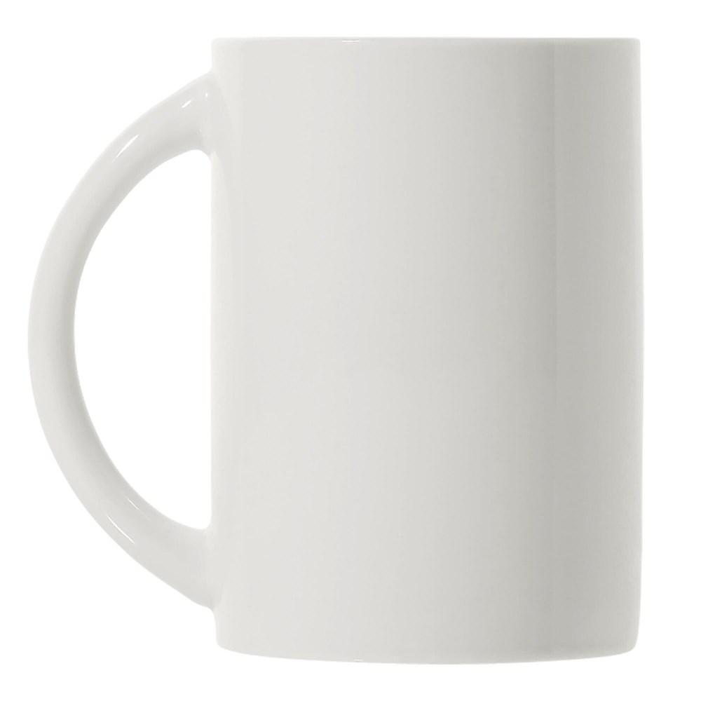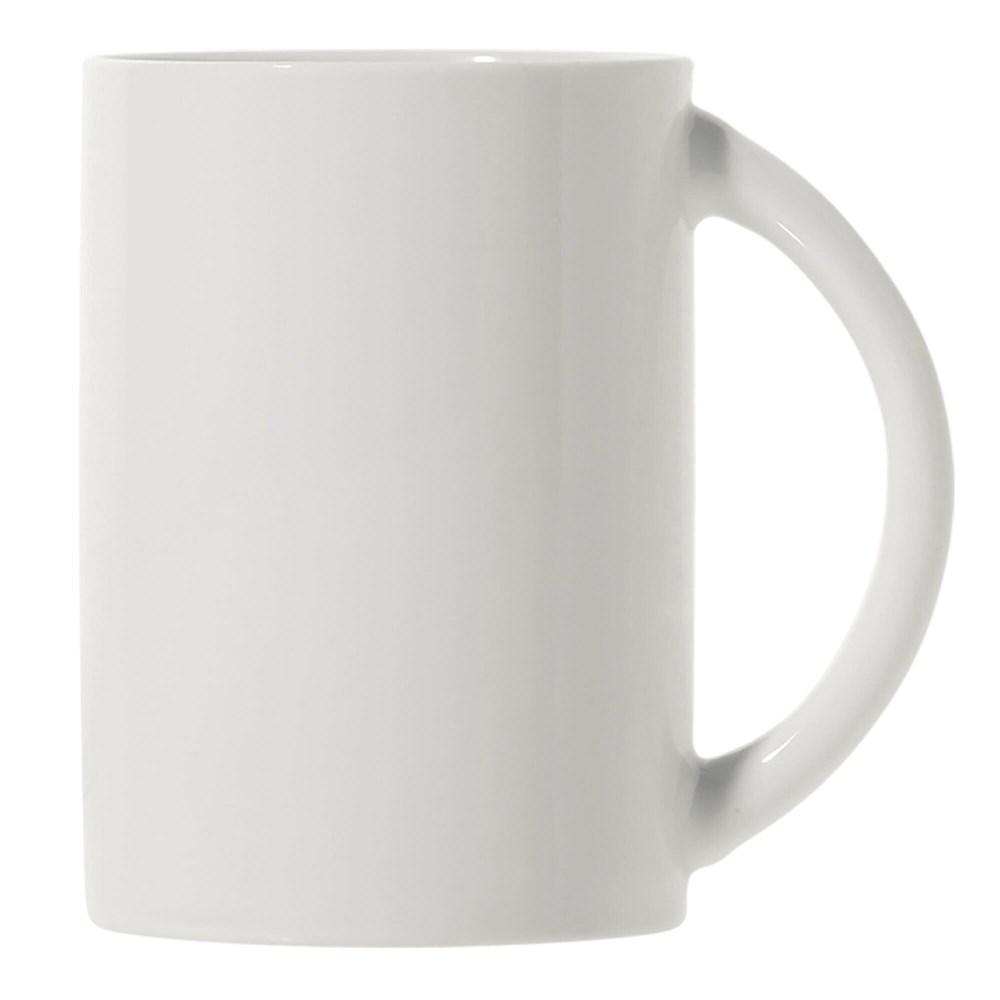 Hoogwaardige porseleinen witte mok geproduceerd in Europa. Hoog en slank model met groot oor.