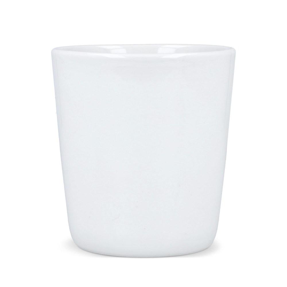Mok van porselein. Conisch model met subtiel oor en Stapelbaar. Geschikt voor alle koffie automaten.