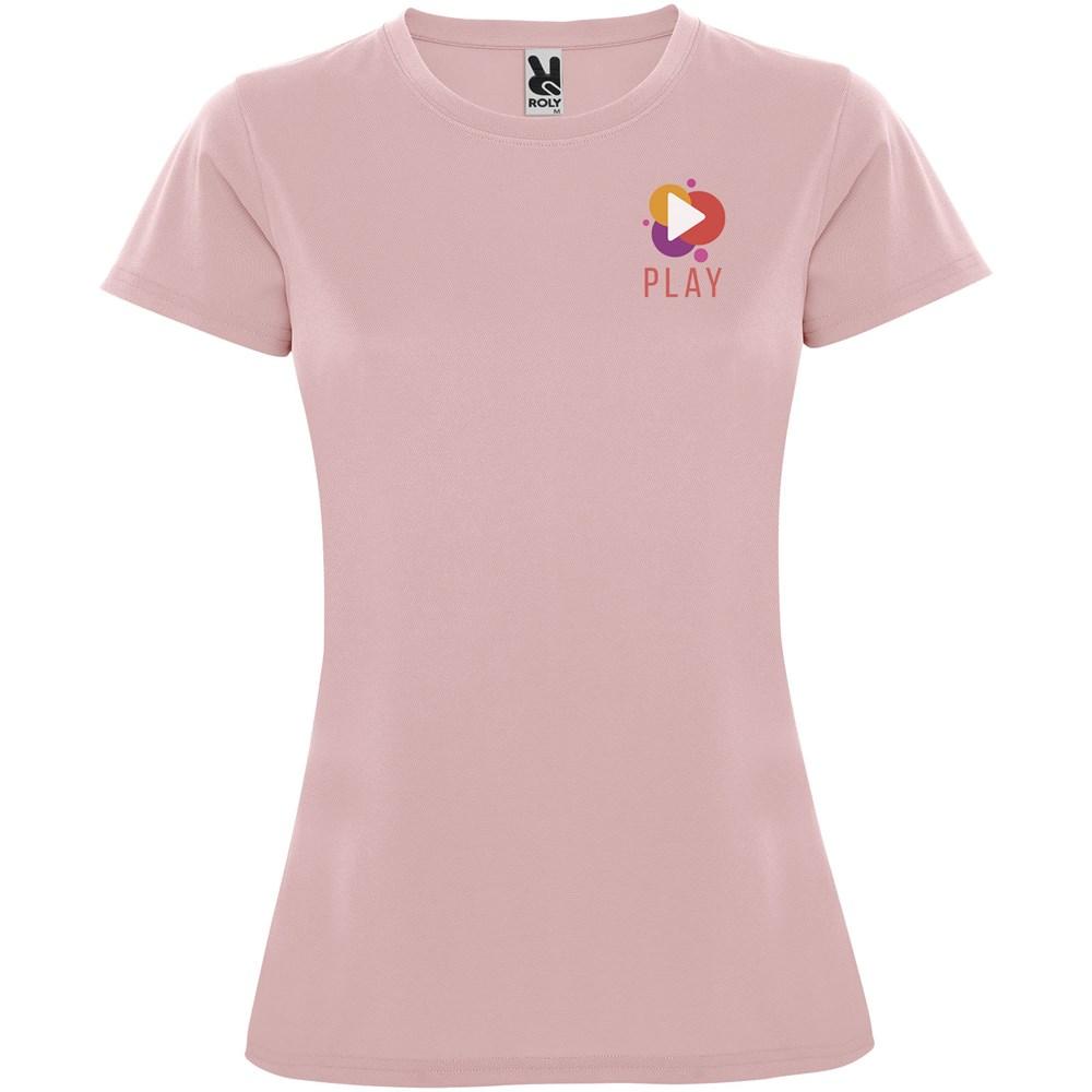 Ontdek het Montecarlo sportshirt met korte mouwen voor dames, perfect als gepersonaliseerd relatiegeschenk met jouw logo. Dit slim-fit T-shirt met ronde hals en afgedekte naden biedt een ademende, technische stof die snel droogt en gemakkelijk wast, ideaal voor actieve events of promotie.