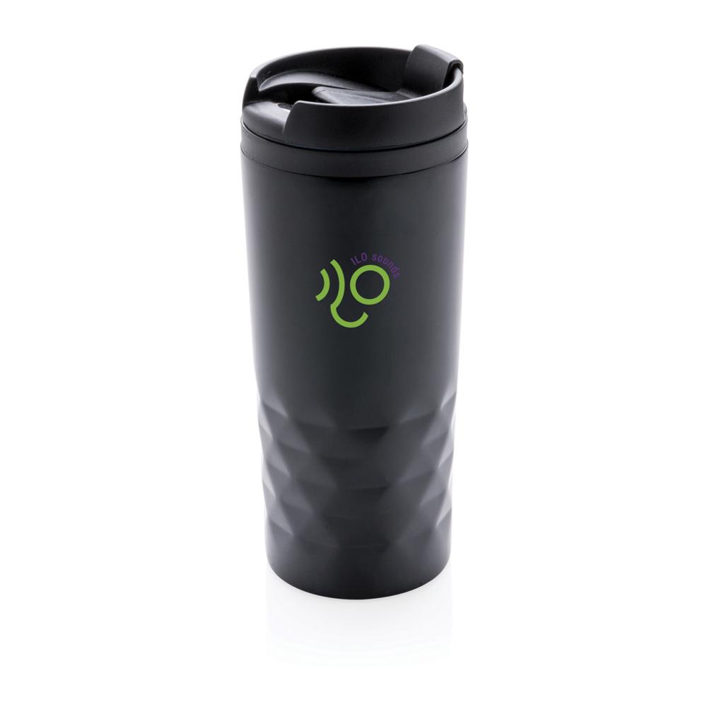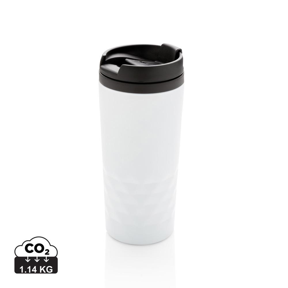 Trendy roestvrijstalen mok met geometrisch patroon. PP binnenzijde. Met de hand afwasbaar. Inhoud 300ml.