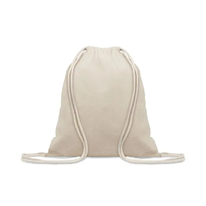 Ontdek onze koordrugzak gemaakt van 80% gerecycled katoen en 20% conventioneel katoen, met een gewicht van 140 gr/m². Deze rugzak biedt een trekkoordsluiting voor eenvoudig gebruik en is ideaal als praktisch relatiegeschenk voor uw bedrijf.