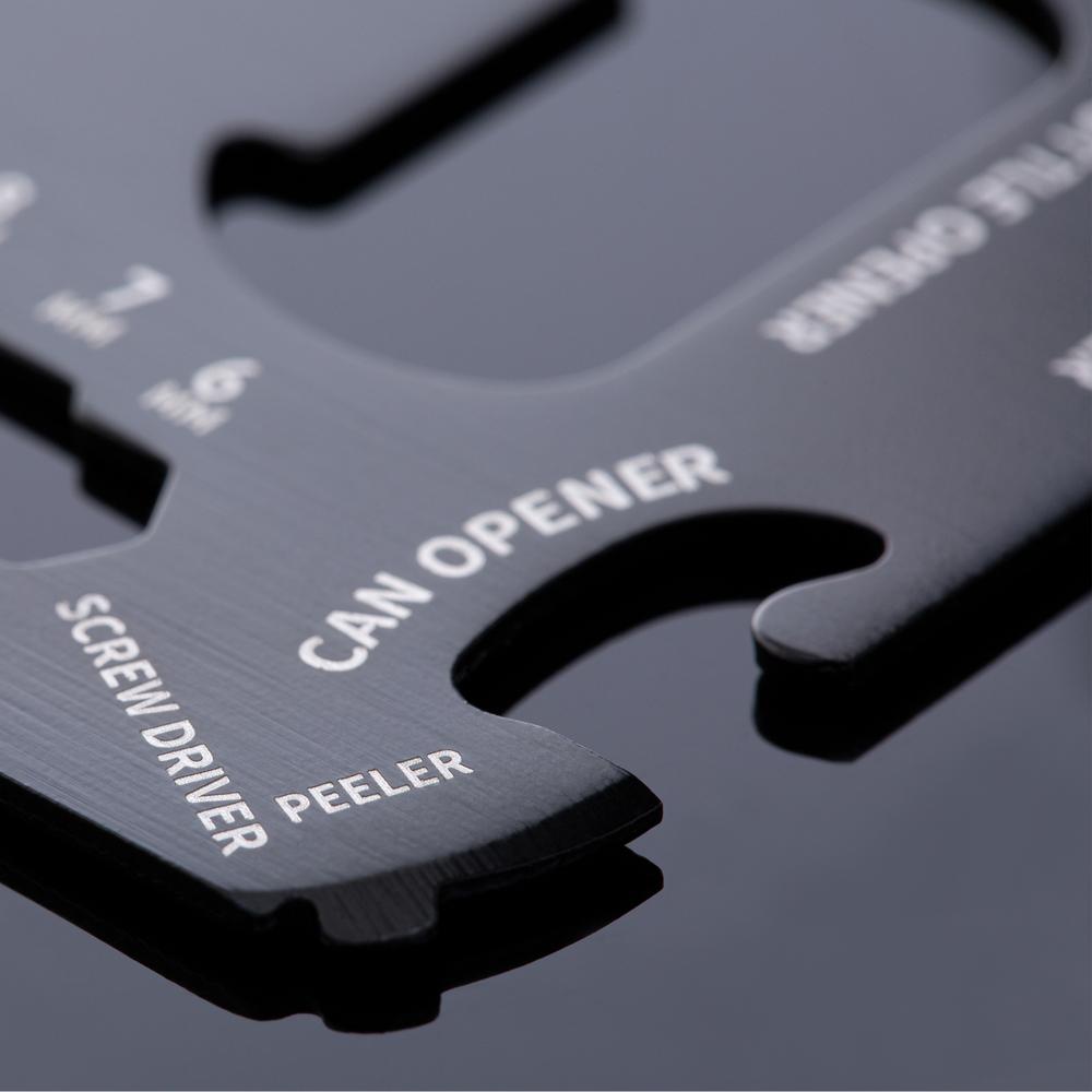 Met 8 handige functies ben je altijd voorbereid: flessenopener, blikopener, liniaal, schroevendraaier, inbussleutel, gradenboog, verpakkingopener en vleugelmoeraandrijver. Personaliseer hem met jouw logo voor een uniek relatiegeschenk dat jouw merk promoot bij klanten.