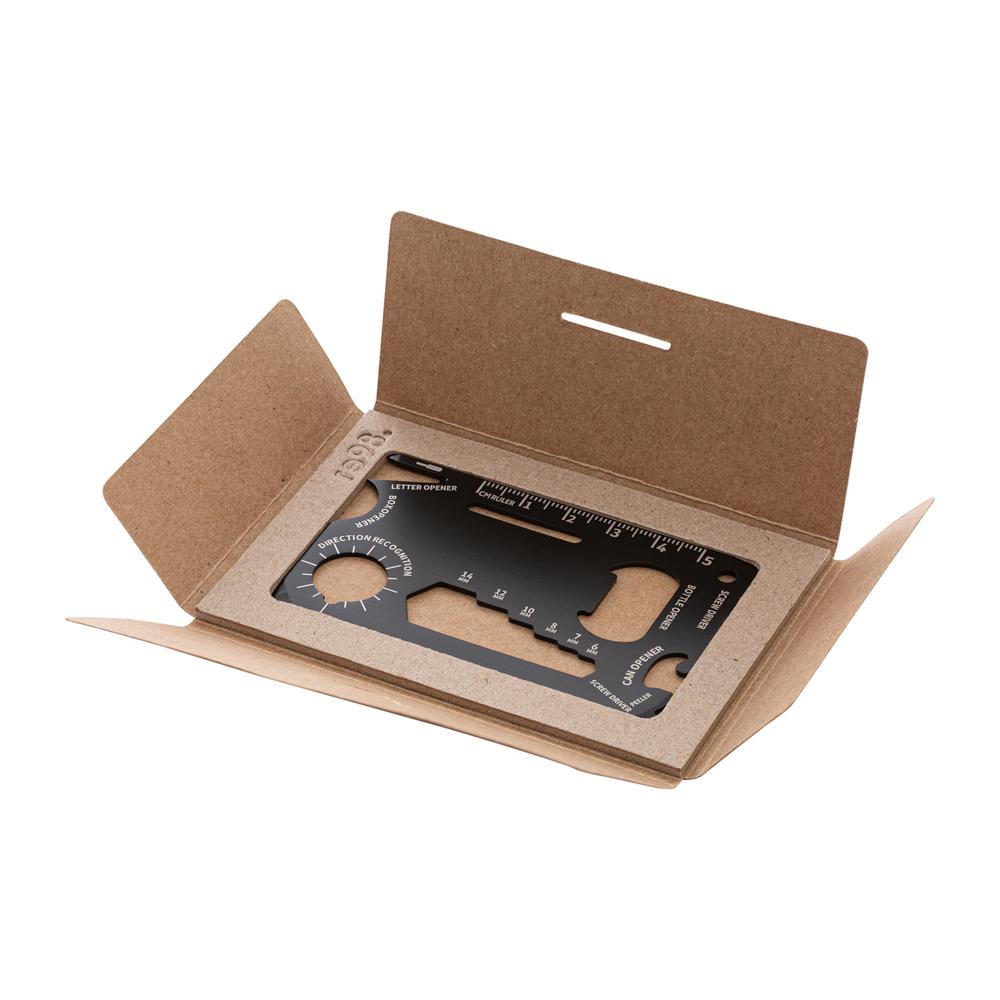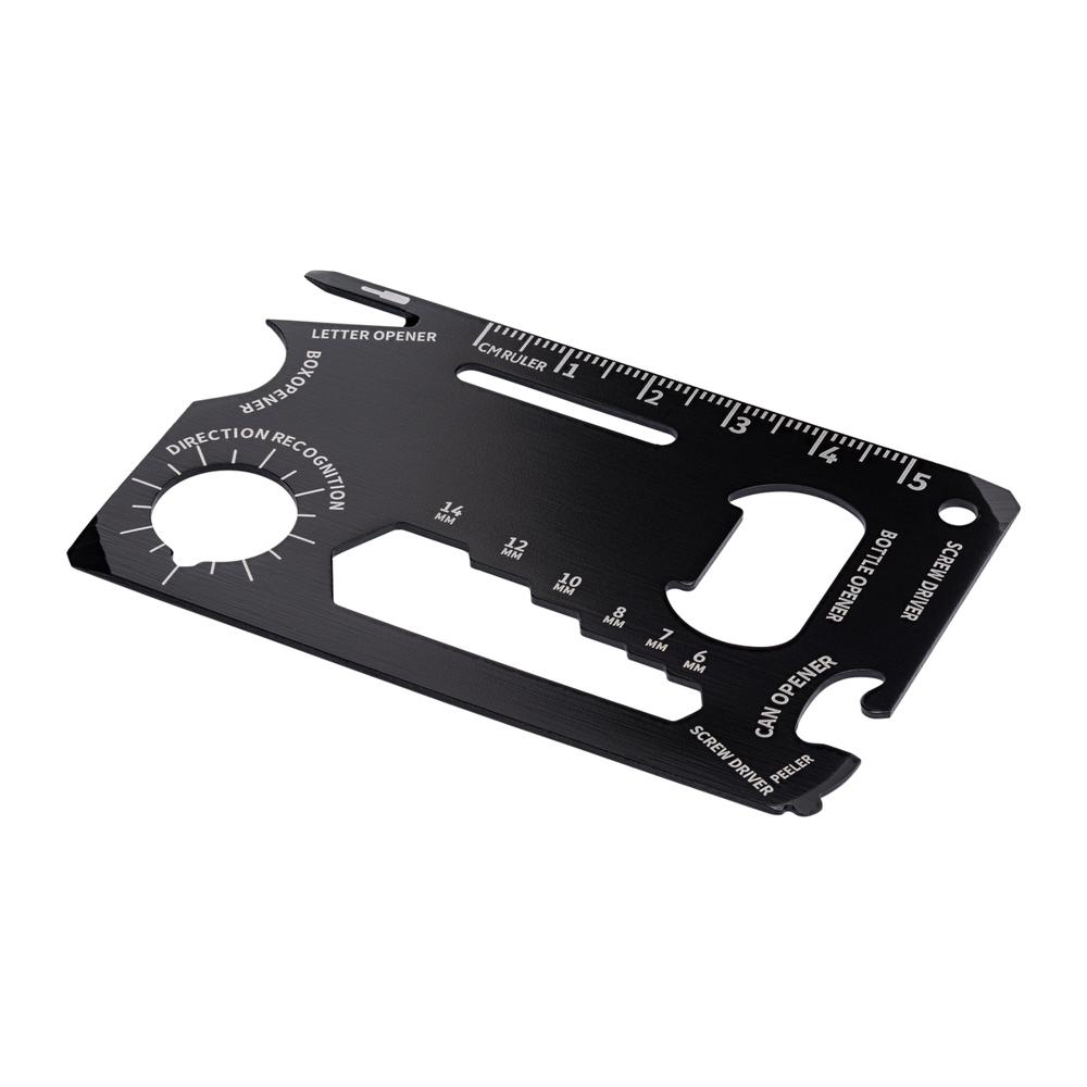 Ontdek deze superhandige kaarttool op creditcardformaat, perfect als gepersonaliseerd relatiegeschenk met jouw logo. Je glijdt hem moeiteloos in je portemonnee, broekzak of rugzak, ideaal voor reizen, events en alledaagse avonturen. Gemaakt van stevig roestvrij staal, biedt hij 8 slimme functies die je altijd bij de hand hebt. Zo bereid je je voor op onverwachte situaties en laat je je merk opvallen bij klanten.