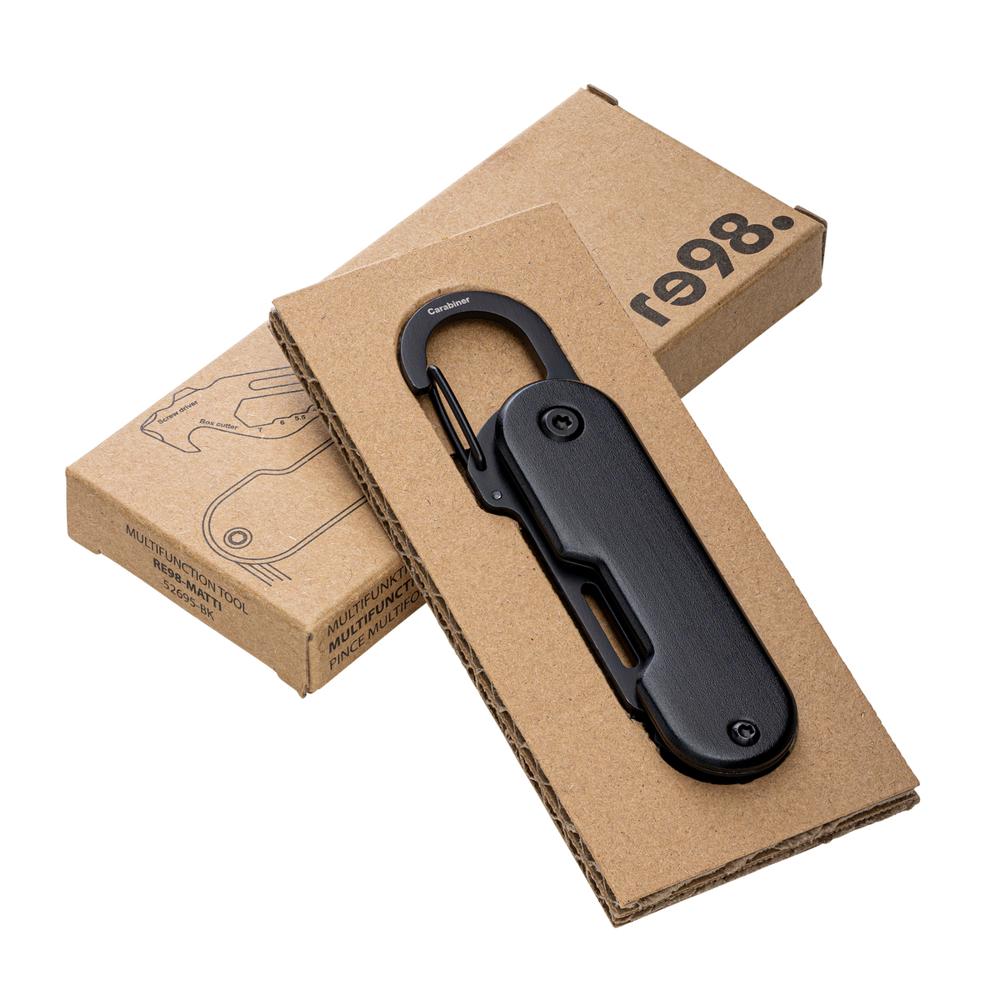 Je bent altijd voorbereid op kleine reparaties en aanpassingen, onderweg of thuis, met dit compacte multifunctionele gereedschap RE98-MATTI. Perfect als gepersonaliseerd relatiegeschenk met jouw logo, ideaal voor marketingacties en events.